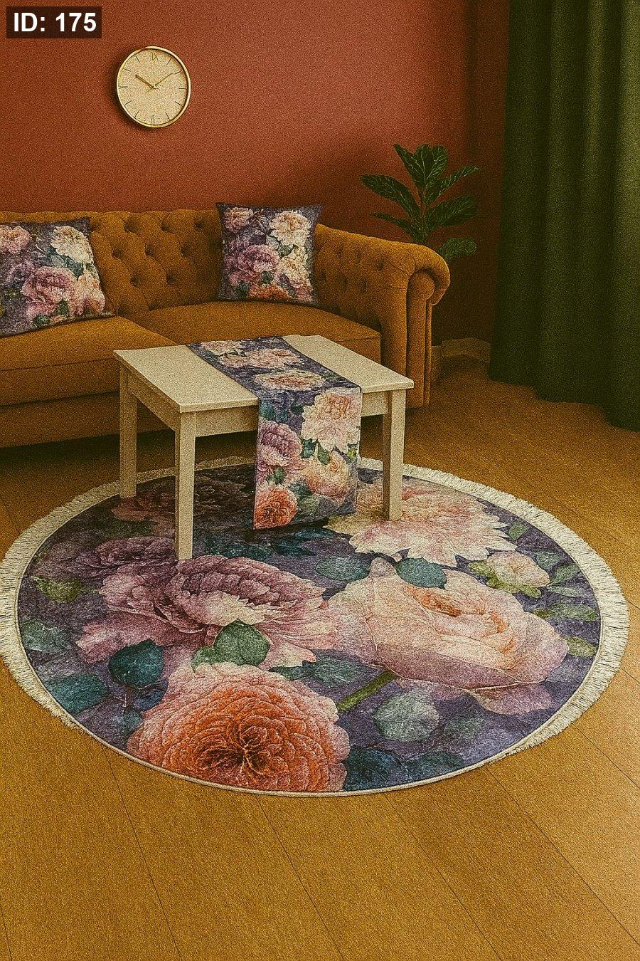 بتتكون من: * سجادة قطرها 90 سم * رنر 140*40 * وجه قرنية عدد 2