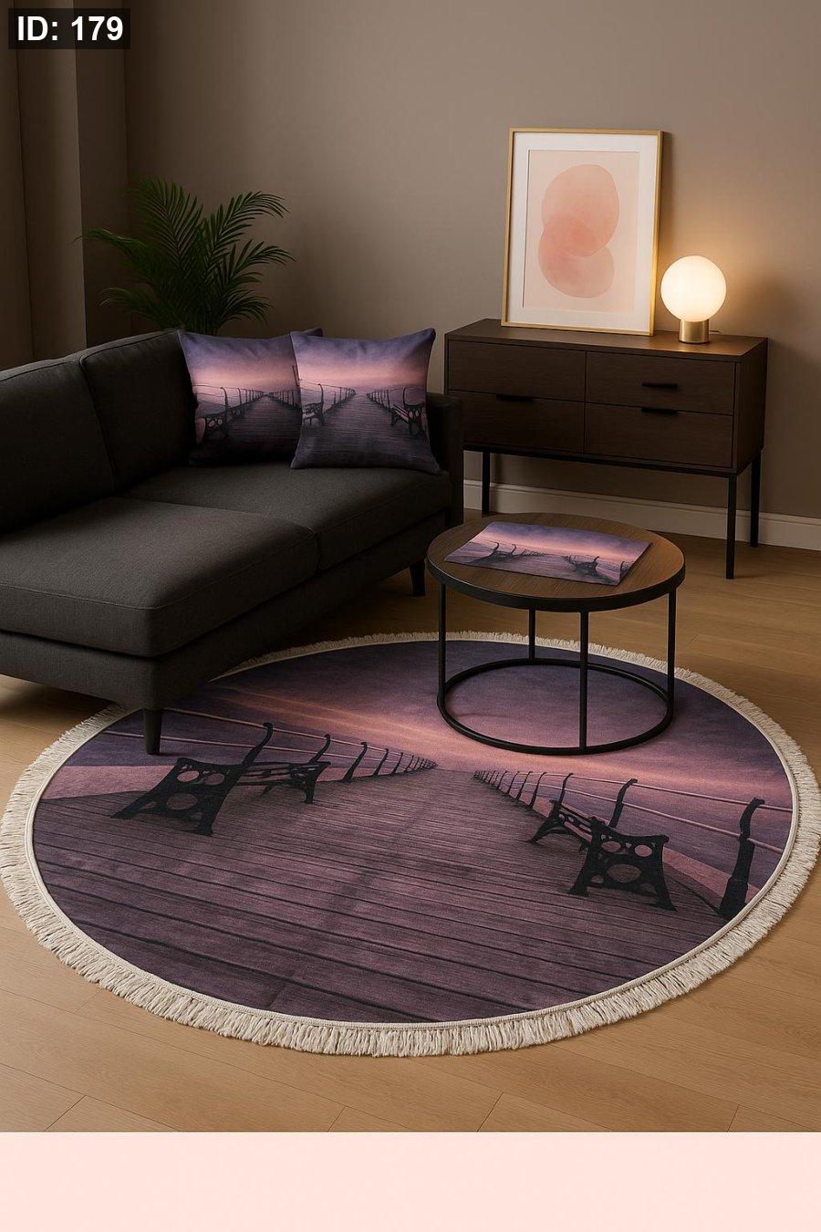 بتتكون من: * سجادة قطرها 90 سم * رنر 140*40 * وجه قرنية عدد 2