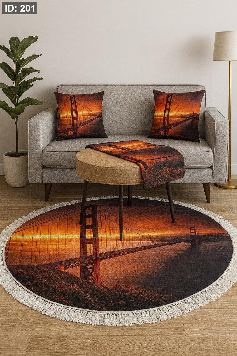بتتكون من: * سجادة قطرها 90 سم * رنر 140*40 * وجه قرنية عدد 2