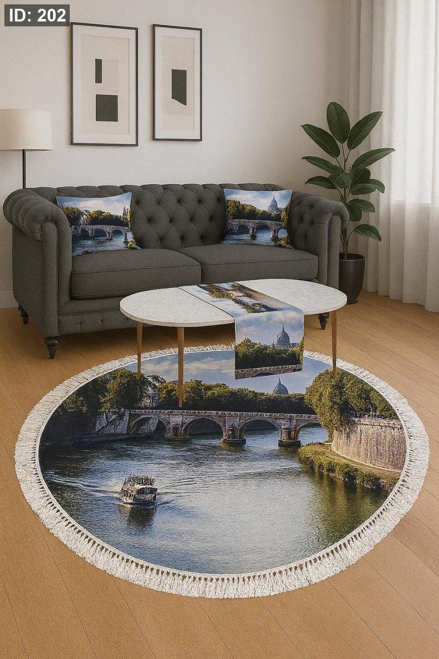 بتتكون من: * سجادة قطرها 90 سم * رنر 140*40 * وجه قرنية عدد 2