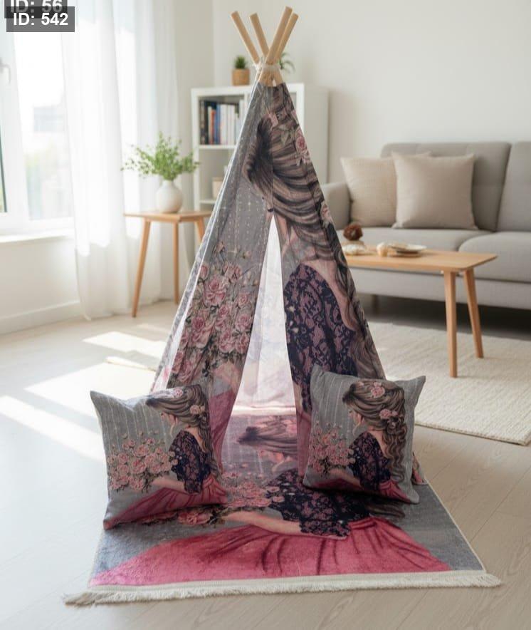 تتكون من *خيمة ارتفاع 1.6متر * سجادة *مخدات عدد 2