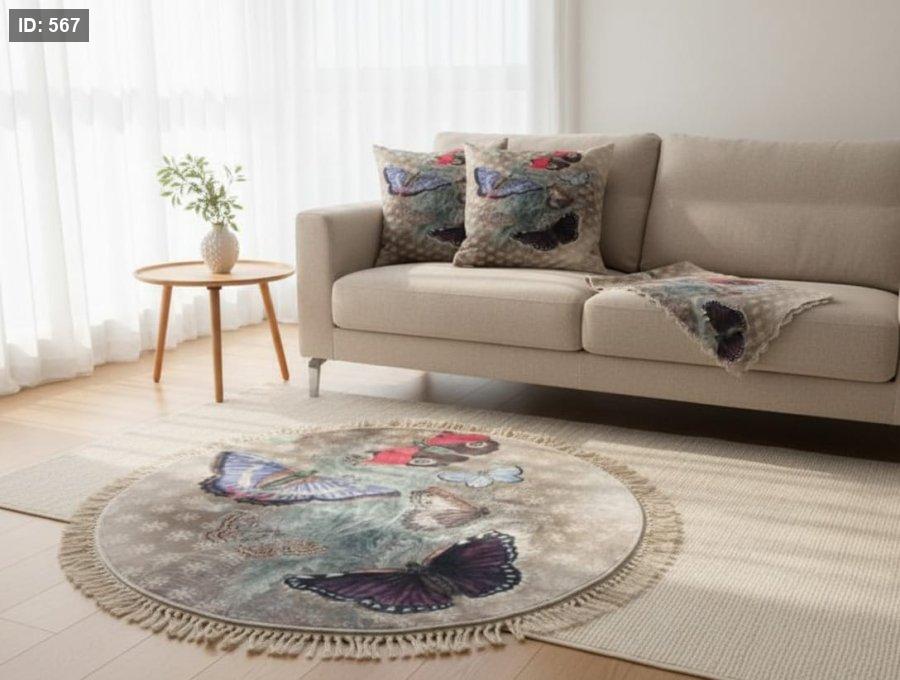 بتتكون من: * سجادة قطرها 90 سم * رنر 140*40 * وجه قرنية عدد 2